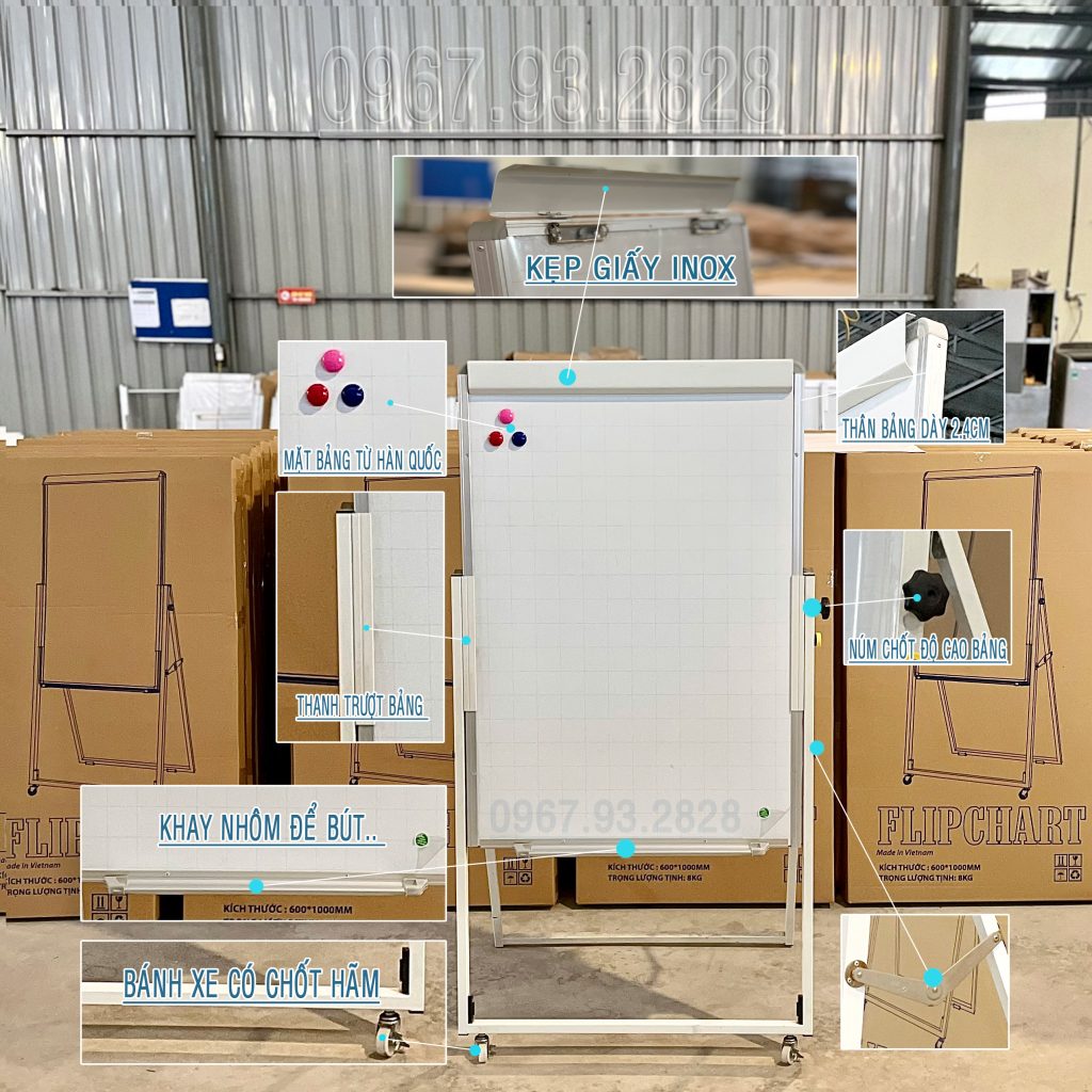 Bảng Flipchart nằm trong top những loại bảng được người tiêu dùng bình chọn nhiều nhất. Chiếc bảng được sử dụng nhiều trong các cuộc hội thảo, thuyết trình bởi nó sử dụng dễ dàng, thích hợp trong môi trường phải di chuyển nhiều. Bảng Flipchart nhỏ gọn, thiết kế đẹp mắt, màu sắc trang nhã. Mang những ưu điểm vượt trội và tính năng sử dụng tuyệt vời. Sản phẩm này hiện đang bán chạy trên thị thường, cũng như được nhiều khách hàng tin tưởng lựa chọn.