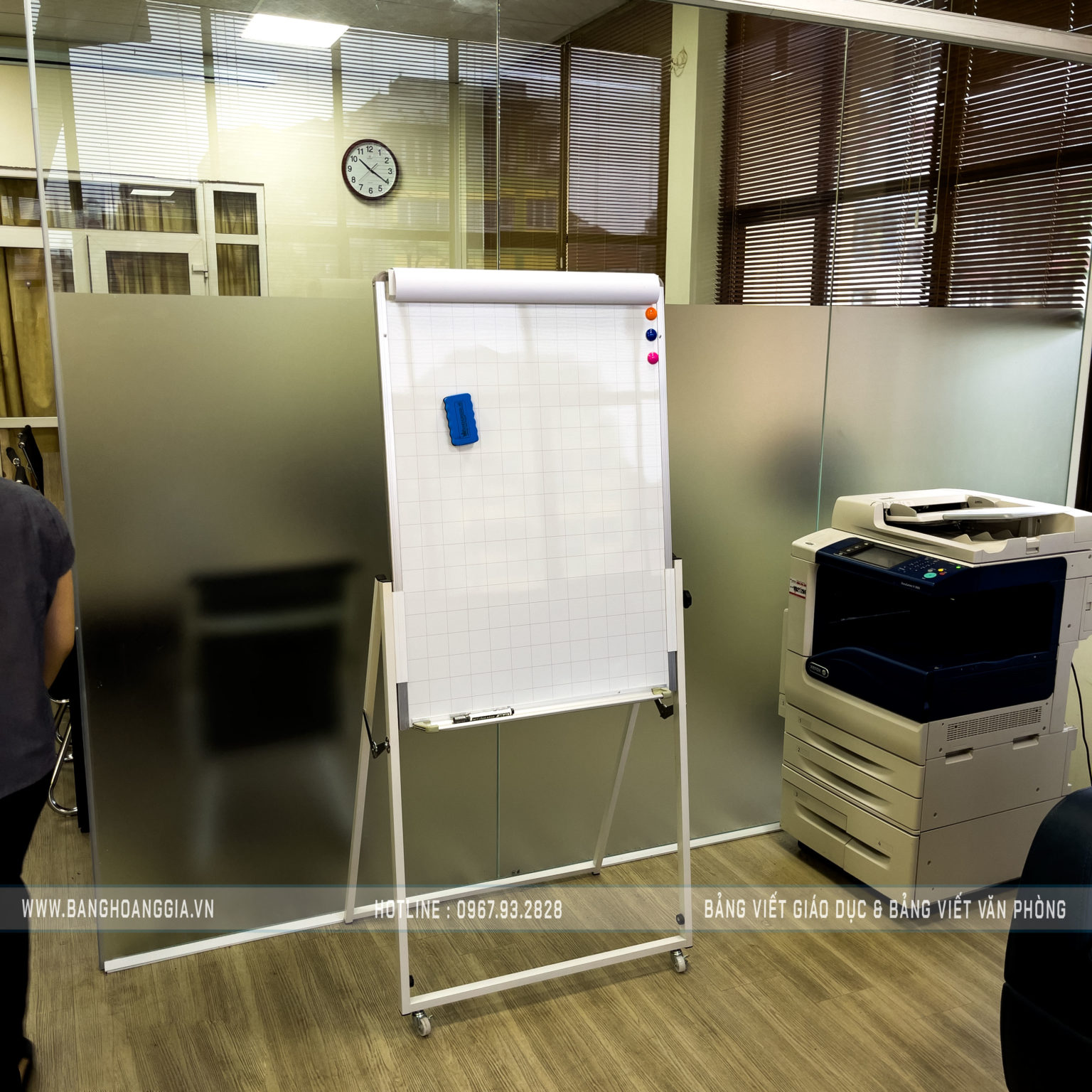 Trong tất cả các mẫu bảng văn phòng bảng Flipchart là mẫu bảng đang rất thịnh thành. Hãy cùng bắt đầu từ tên gọi của nó nhé, Flip: có nghĩa là lật và Chart: là biểu đồ. Ý hiểu của nó là các loại biểu bảng được lật qua lại trên một mặt phẳng dựng đứng trên một giá đỡ trong các buổi thuyết trình. Bảng này thường được sử dụng trong họp nhóm, thảo luận tại Việt Nam. Bảng Flipchart thường có 2 khổ giấy là A1 và A0. Kích thước các bảng flipchart đều đi theo hai kích thước khổ giấy này.